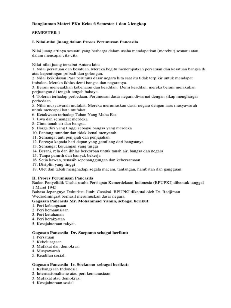 Rangkuman Materi PKn Kelas 6 Semester 1 dan 2 lengkap - Aneka …