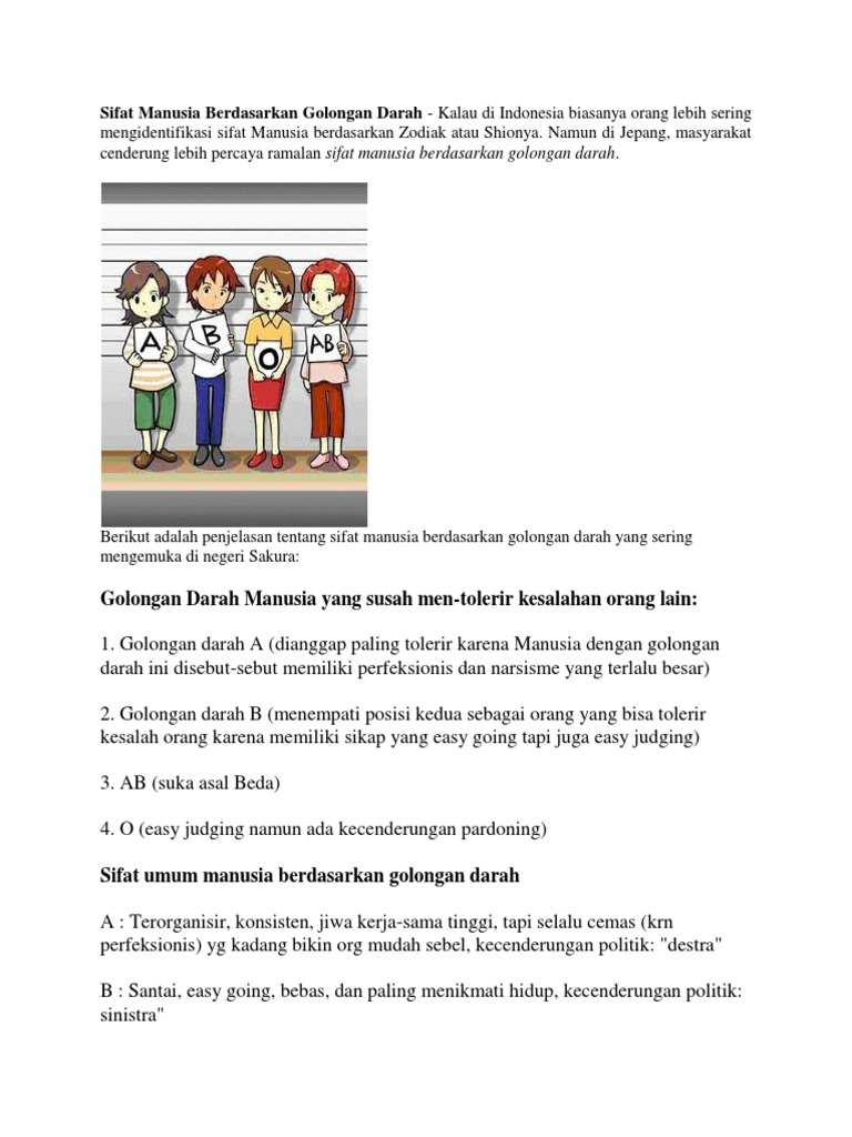 Sifat Manusia Berdasarkan Golongan Darah - Kalau di Indonesia …