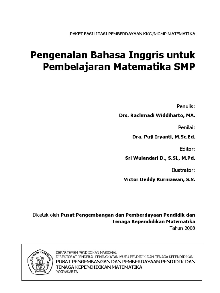 Bahasa Inggris Untuk Matematika SMP | obetosh riga - Academia.edu