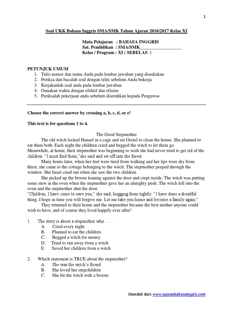 Latihan Online Soal UKK Bahasa Inggris Kelas XI SMA Tahun 2017 …