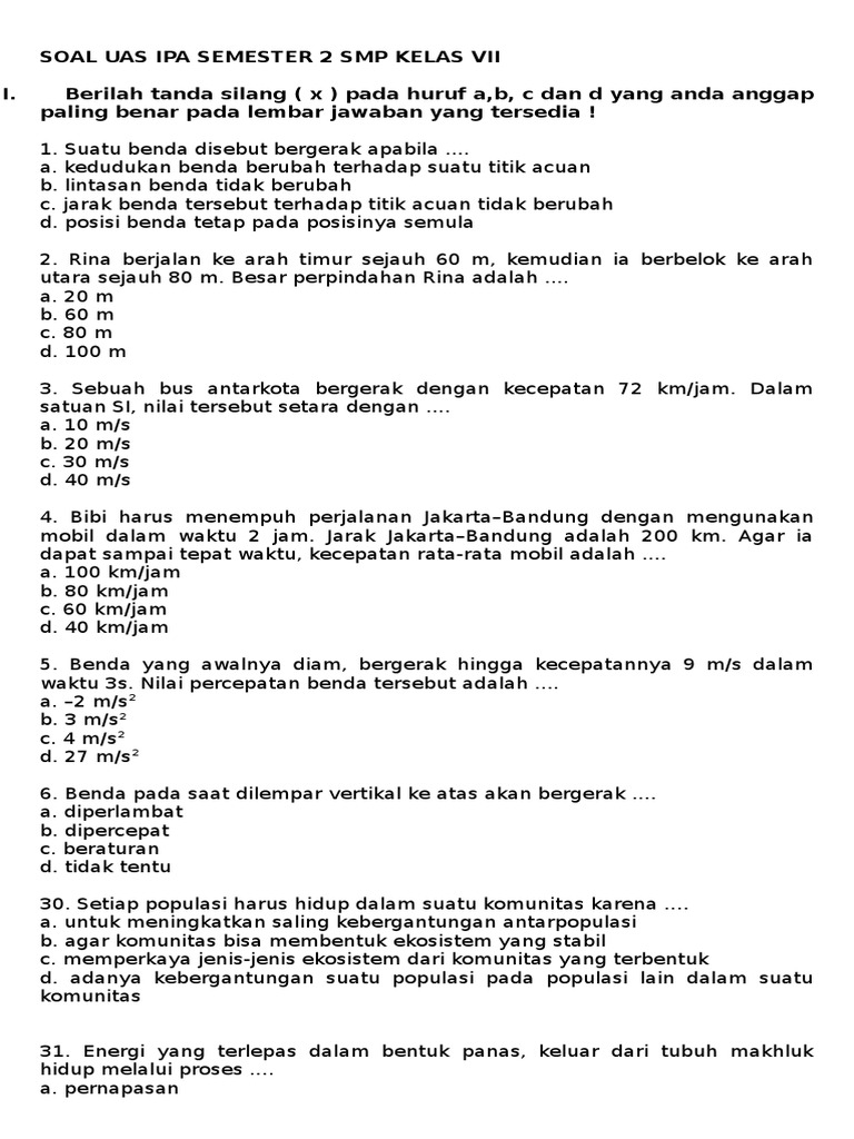 SOAL UH GERAK BENDA DAN MAKHLUK HIDUP SMP KELAS 8 SMT1 - IPA Asik