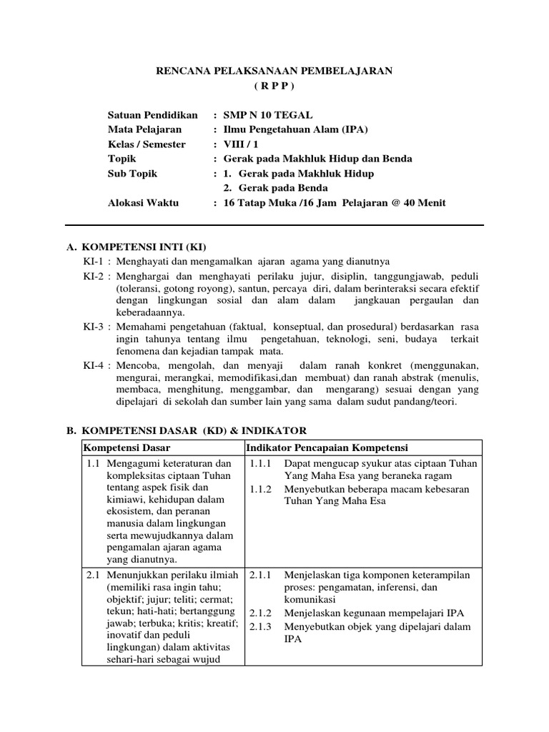 uji kompetensi 1 IPA kelas 8 gerak benda dan mahluk hidup di …