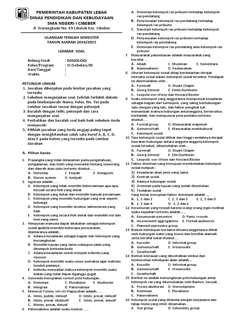 DOC) Soal Sosiologi | wilhelmus kodu - Academia.edu