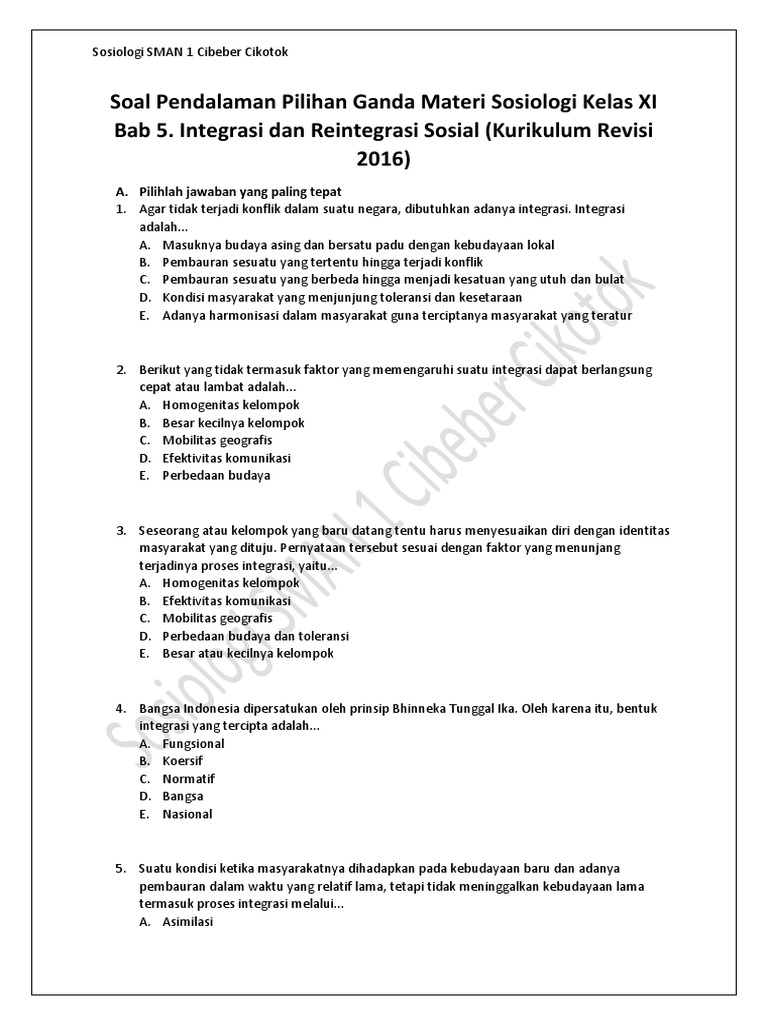 Soal Sosiologi : Integrasi Sosial Lengkap - Muttaqin id