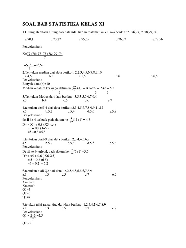 kumpulan dan pembahasan soal Statistika Kelas Xi