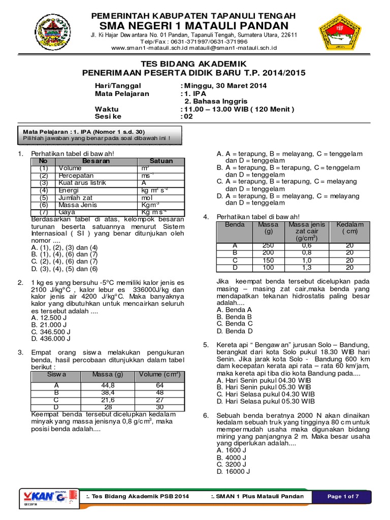 Contoh Soal Tes Masuk Sma 2015 - Contoh Soal Terbaru