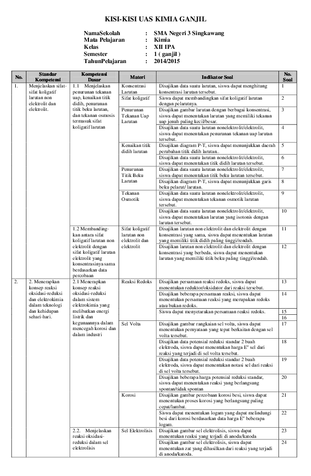 Kisi-kisi Soal PAS/ UAS Kimia Kelas 12 K13 Revisi 2018 …