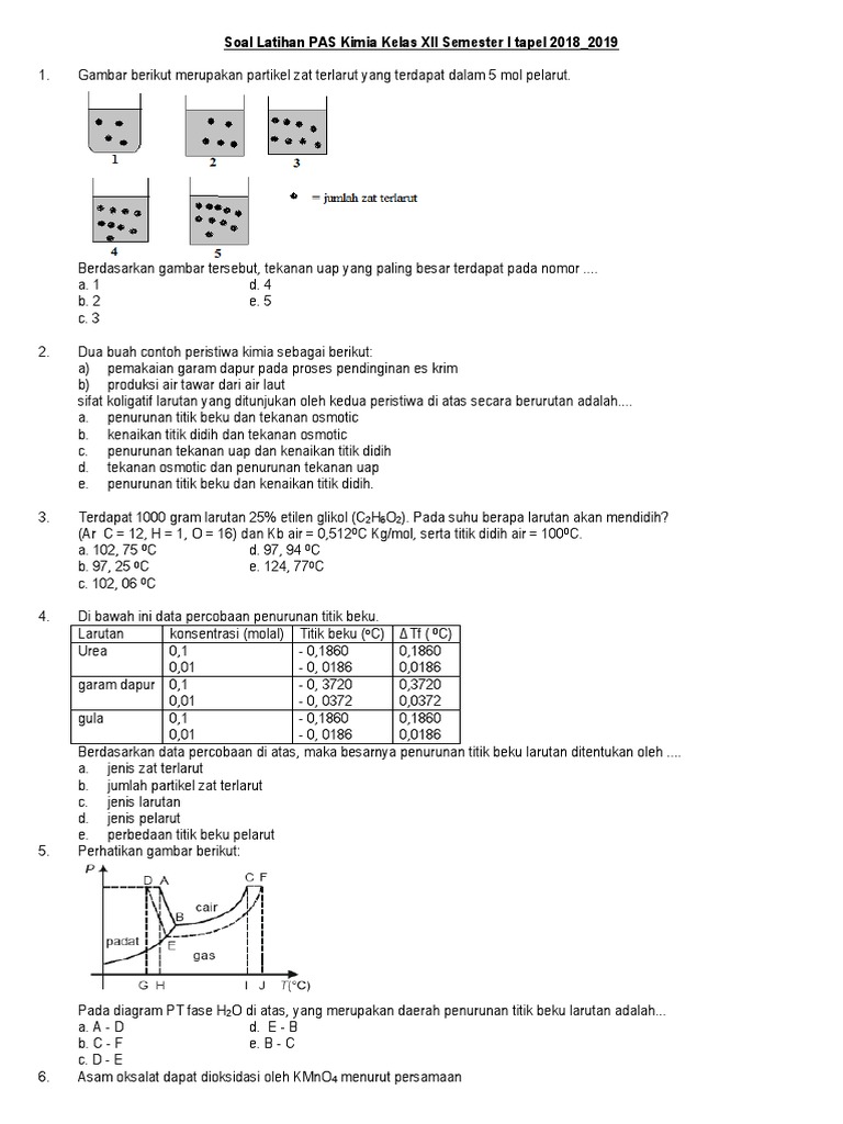 Soal Latihan PAS Kimia Kelas XII Semester I tapel 2018_2019