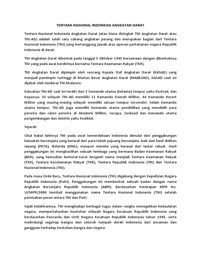 Tentara Nasional Indonesia Angkatan Darat (TNI-AD …