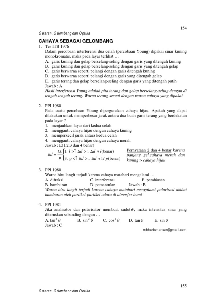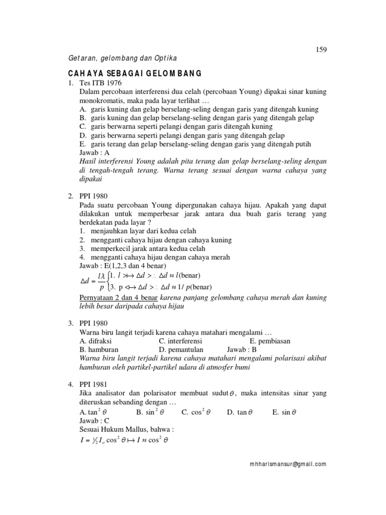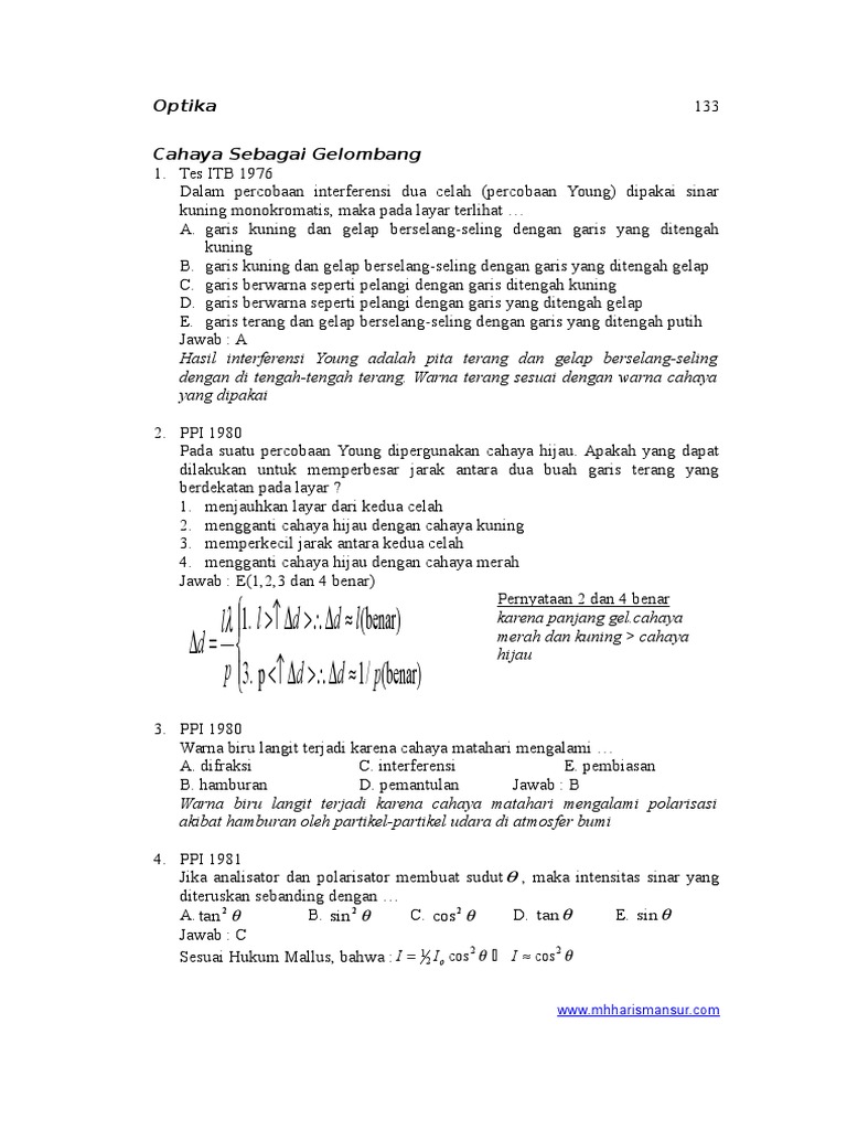Soal Kompetensi Cahaya Kelas 12 Pilihan Ganda Dan Esay